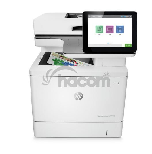Tlačiareň HP Color LaserJet Enterprise MFP M578dn; Štyri predinštalované tonerové kazety HP LaserJet (výťažnosť 5 500 strán čiernobielo a 3 500 strán kombinovane - azúrová, purpurová, žltá); Zberná nádobka tonera; Priložená dokumentácia; napájací kábel
