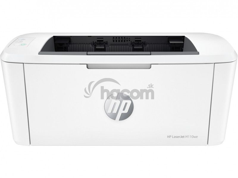 Tlačiareň HP LaserJet M110we; Napájací kábel; Čierna tonerová kazeta HP LaserJet (výťažnosť: 300 strán); Inštalačný leták; Referenčná príručka; Záručná príručka; Leták