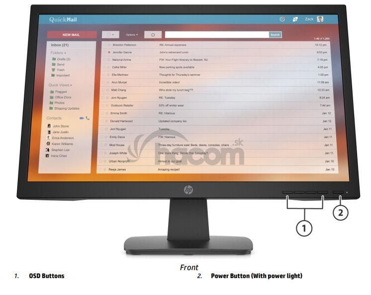 Naklápanie monitoru: dopredu 5 °, dozadu 20 °