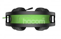 Slúchadlá HP Pavilion Gaming 600. Vďaka pohodlnému hlavovému mostu, v laserovo zelenej farbe, Vás po niekoľkohodinovom hraní herných titulov nebude bolieť hlava a budete si môcť dlouhosáhle užívať 7.1 virtuálny priestorový zvuk. Veľké náušníky zaručí kvalitný odhlučnenie tak, aby Vás okolie nerušilo pri hraní hier, či počúvanie hudby.vlastnosti