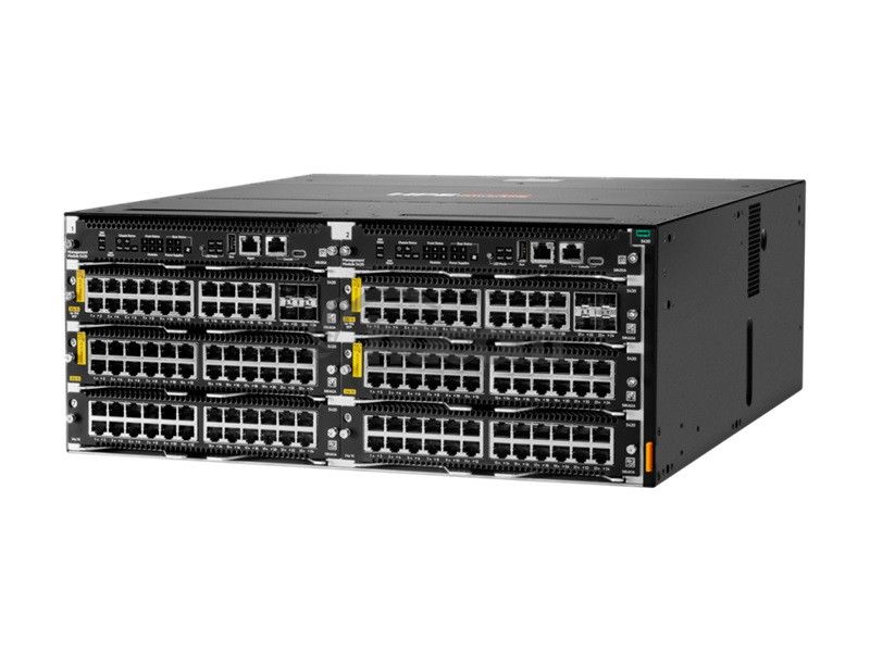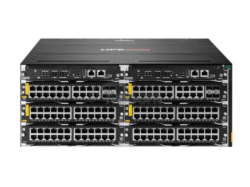 Tento pokročilý modulárny prepínač šasi 4U ponúka až 960 Gb/ss nízkou latenciou, 6 slotov pre karty s polovičnou šírkou, VSX Live Upgrade a HPE Smart Rate 10GbE až 90 W Class-8 PoE s podporou BGP/OSPF/RIP/PIM.