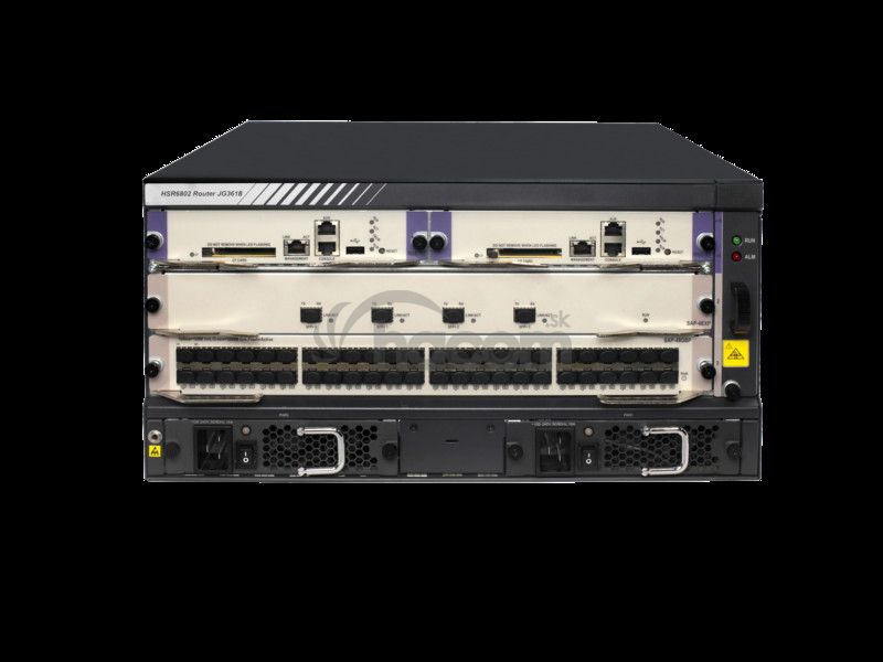 HPE HSR6802 Router Chassis5RU high-performance distributed architecture router platform. Supports 2 MPUs in 1 + 1 redundancy and up to 2 service line cards. Delivers up to 1.024 Tbps backplane bandwidth and 120 Mpps throughput.