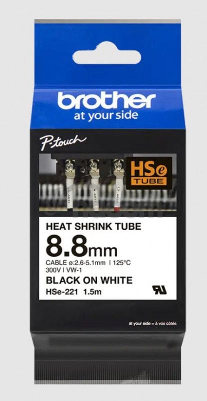 Originálna tepelne zmršťovacia trubička Brother HSe-221 so šírkou 8.8 mm je určená špeciálne pre trvalé značenie a identifikáciu káblov a vodičov. Pri zmršťovacom pomere 2:1 sa odporúča použitie HSe-221 s čiernou tlačou na bielom podklade pre káble s priemerom od 2,6 mm do 5,1 mm. Kompatibilný s tlačiarňami štítkov P-touch, ktoré majú logo HS alebo HSe na kryte kazety s páskou.*Šírka 8,8 mm, dĺžka 1,5 m