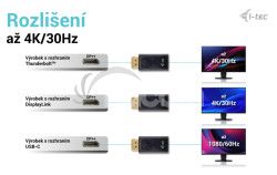 V prípade DisplayPortu s DisplayLinkom bude maximálne rozlíšenie 4K / 30 Hz (napr. dokovacia stanica i-tec alebo videoadaptéry s číslom produktu začínajúcim CAxxxxxxxxx).