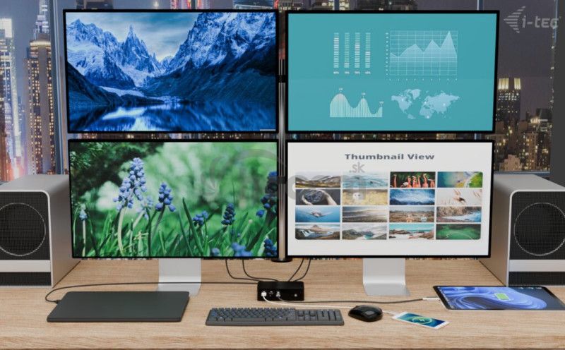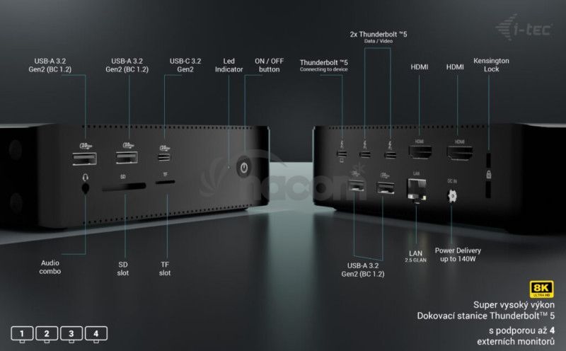 - i-tec Thunderbolt5 Quattro Display Docking Station, 5x USB, 2.5 GLAN, Power Delivery 140W TB5QUATTRODOCKPD