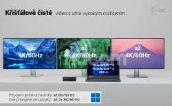 Vďaka integrovanému protokolu DP 1.4 môžete túto dokovaciu stanicu pripojiť k monitoru s rozlíšením až 8K (7680 x 4320) s obnovovacou frekvenciou 60 Hz, čo zodpovedá rozlíšeniu štyroch monitorov, každého v rozlíšení 4K. To z neho robí ideálne riešenie pre grafikov, analytikov, vývojárov, filmových strihačov alebo nadšencov a milovníkov videa vo vysokom rozlíšení.