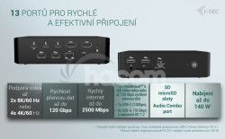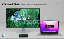 • ** Ak váš notebook alebo tablet podporuje nový a moderný nabíjací protokol USB-C Power Delivery PD 3.1, dokovacia stanica ponúkne nabíjací výkon až 140 W (ak máte PD 3.0, nabíjací výkon bude 100 W).