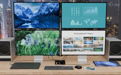 K notebookom s Thunderbolt 5 a Windows je možné pripojiť až štyri (v tom prípade veko notebooku musí byť zatvorené), k notebookom Apple s macOS potom maximálne dva monitory.