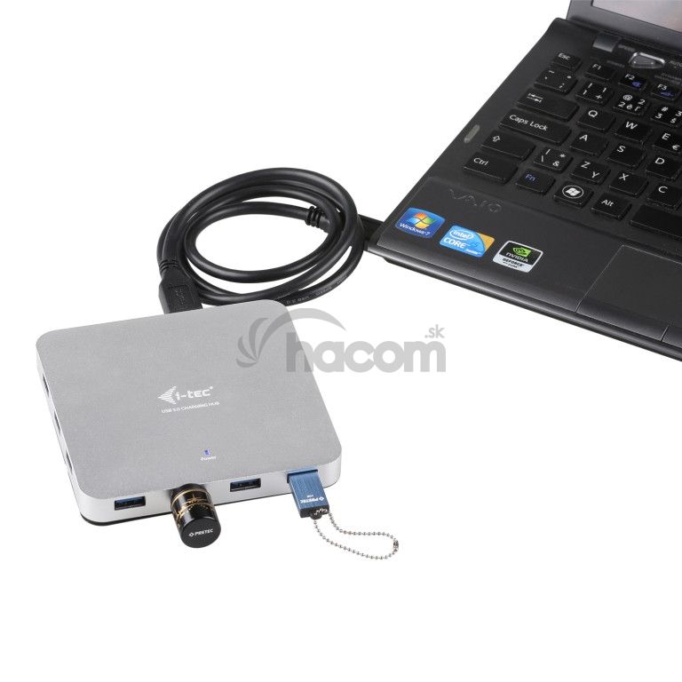 i-tec USB 3.0 Metal Charging HUB na prvý pohľad zaujme svojim elegantným kovovým dizajnom. Je ideálnym doplnkom pre každého, kto má vo svojom notebooku, ultrabooku alebo PC nedostatok USB portov a je nútený neustále pripájať a odpájať svoje obľúbené USB zariadení, ako sú flash disky, mobilné telefóny, tablety, digitálne fotoaparáty, MP3 prehrávače, tlačiarne, apod.Tento HUB ponúka 10 USB 3.0 portov s funkciou Plug & Play a štandardným USB nabíjaním - HUB automaticky detekuje, či je pripojené zariadenie pre USB nabíjanie. Výhodou je, že vďaka ich rozmiestnenie máte dostatok priestoru aj pre zapojenie väčších zariadení. Rozhranie USB 3.0 je dôležité najmä pre dátové prenosy z USB 3.0 pamäťových kariet a flash diskov, kde sa najviac využije jeho vysoká prenosová rýchlosť. LED dióda zobrazuje stav čítania a zápisu dát.