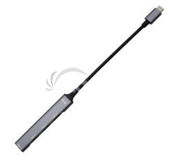 USB-C a Thunderbolt“ 3 či 4 sú na dnešných notebookoch a tabletoch čím ďalej populárnejšie. Spoločne s ich čím ďalej širším využívaním ubúda na tele notebookov množstvo USB portov. A ak potrebujete pripojiť k svojmu zariadeniu príslušenstvo, na ktoré už dostatok portov nemáte, môžete využiť tento malý, ale šikovný rozbočovač.S týmto hubom získate ďalšie 4 ďalšie USB: štandardné USB 3.0, a tri USB 2.0 porty. Pripojte si externú klávesnicu a myš, prenášajte dáta alebo filmy z USB flash disku rýchlosťou až 5 Gbps alebo nabíjajte svoje mobilné zariadenia nabíjajte (štandardné USB rýchlosťou 0.9A).