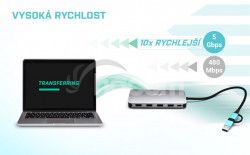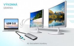 Výkonná, napriek tomu však malá a prenosná dokovacia stanica, ktorá podporuje výstup až na tri externé monitory. Dok je možné použiť prakticky s akýmkoľvek notebookom, pretože podporuje pripojenie ku všetkým obvyklým portom: USB 3.0, USB-C, USB4 a Thunderbolt“ 3/4, a zároveň podporuje všetky bežné súčasné operačné systémy. Pripojenie k trom monitorom však bude možné iba v prípade notebooku s portom Thunderbolt“ 3/4, prípadne USB-C portom podporujúcim prenos videa (tzv. USB-C DP Alt mode).