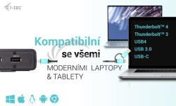 • Univerzálna dokovacia stanica kompatibilná s notebookmi a tabletmi s rozhraním USB-C, USB-A a Thunderbolt.