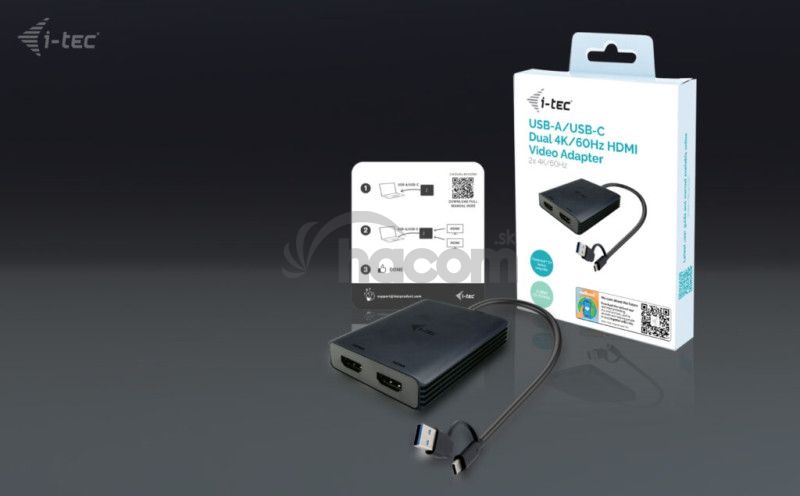 - i-tec USB-A/USB-C Dual 4K HDMI Video adaptér CADUAL4KHDMI