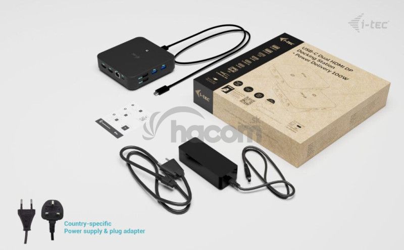 - i-tec USB-C DP Dual HDMI Docking Station, Power Delivery 100W + i-tec Universal Charger 100W C31TRIVIDPRO100W
