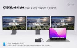 • Kompatibilný s notebookmi a tabletmi s USB-C, USB4 a Thunderbolt rozhraním. (Hostiteľské zariadenie musí podporovať režim DisplayPort Alt.)• 2× HDMI a 1× DisplayPort++ s podporou až troch monitorov s rozlíšením 4K alebo jedného monitora s rozlíšením 5K/60 Hz (v závislosti od výkonu notebooku). macOS podporuje iba jeden rozšírený displej.