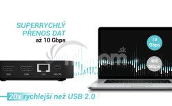 Vysoko výkonná kancelárska dokovacia stanica USB-C s podporou až 3 externých monitorov s rozlíšením 4K. Stanica je kompatibilná s akýmkoľvek notebookom vybaveným portom USB-C, USB4 alebo Thunderbolt 3/4/5. Samozrejmosťou je aj možnosť nabíjania notebooku či tabletu výkonom až 100 W.
