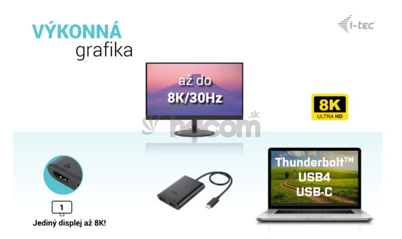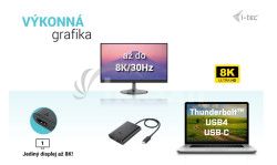 • Výkonný videoadaptér USB-C, ku ktorému je možné pripojiť až dva monitory súčasne• Adaptér podporuje rozlíšenie až 1x 8K / 30 Hz alebo 2x 4K / 60 Hz