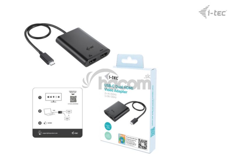 - i-tec USB-C Dual 4K/60Hz (single 8K/30Hz) HDMI Video Adapter C31DUAL4K60HDMI