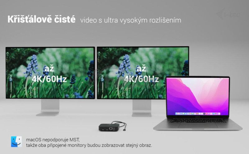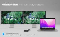 • Kompatibilný s notebookmi a tabletmi s USB-C, USB4 a Thunderbolt rozhraním. (Hostiteľské zariadenie musí podporovať režim DisplayPort Alt. mode)• 2× HDMI s podporou až dvoch monitorov v rozlíšení 4K pri 60 Hz (macOS podporuje iba jeden rozšírený displej).