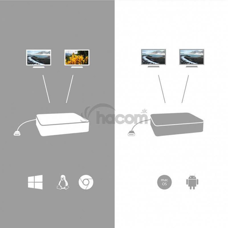 Poznámka: operačný systém MacOS nepodporuje technológiu viac obrazového video prenosu Multi Stream Transport (MST), čo znamená, že v prípade pripojenia k MacOS bude na oboch pripojených monitoroch premietnutý rovnaký obraz.