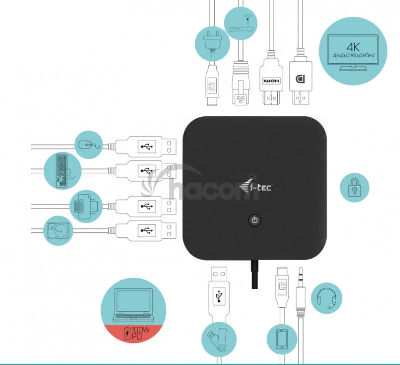 - i-tec USB-C HDMI DP Docking Station with Power Delivery 100 W + i-tec Universal Charger 77W C31HDMIDPDOCKPD65