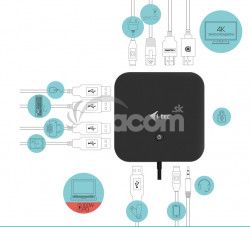 Kancelárska dokovacia stanica USB-C, ktorá podporuje až 2x externý monitor v rozlíšení 4K. Stanica je kompatibilný s akýmkoľvek notebookom vybaveným portom USB-C alebo Thunderbolt 3. 6x USB port, spoľahlivé a rýchle pripojenie do podnikovej siete vďaka integrovanému LAN portu a podpora inštalácie za monitor, to všetko z tejto dokovacej stanice robí ideálneho spoločníka pre profesionálov. Samozrejmosťou je podpora nabíjanie vášho notebooku či tabletu, a to až 65 W (napájací adaptér je priložený).Integrovaný najnovší protokol DP 1.4 podporuje tiež rozlíšenie 5K / 60 Hz, čo môžu oceniť aj profesionálni grafici, dátovo analytici, filmoví editori, prípadne milovníci videa vo vysokom rozlíšení.