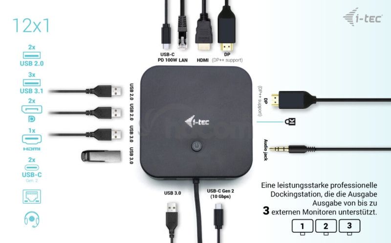 - i-tec USB-C HDMI Dual DP Docking Station, Power Delivery 100W C31TRIPLE4KDOCKPDPRO