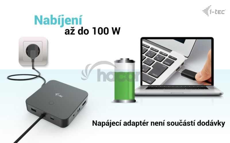 • Poznámka: Napájací zdroj nie je súčasťou dodávky. Dokovaciu stanicu je možné používať s napájacím zdrojom dodávaným s notebookom alebo je možné napájací zdroj zakúpiť samostatne, napríklad i-tec CHARGER-C112W/UK Alternatívne môžete zakúpiť produkt C31TRI4KDPDPRO100/UK, ktorý už obsahuje napájací zdroj.