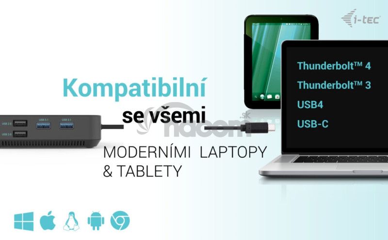 Vysoko výkonná kancelárska dokovacia stanica USB-C, ktorá podporuje až 3x externý monitor v rozlíšení 4K. Stanica je kompatibilná s akýmkoľvek notebookom vybaveným portom USB-C, USB4 alebo Thunderbolt 3/4. 6x USB port, spoľahlivé a rýchle pripojenie do podnikovej siete vďaka integrovanému LAN portu a podpora inštalácie za monitor, to všetko z tejto dokovacej stanice robí ideálneho spoločníka pre profesionálov. Samozrejmosťou je podpora nabíjania vášho notebooku alebo tabletu, a to až 100 W.