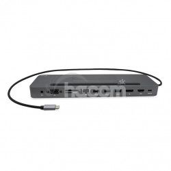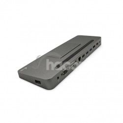 Ergonomická kovová dokovacia stanica USB-C, ktorá podporuje až 3 externé monitory. Stanica je kompatibilný s akýmkoľvek notebookom vybaveným portom USB-C alebo Thunderbolt 3 (60cm integrovaný kábel je dostatočne dlhý pre pripojenie všetkých notebookov s obrazovkou do veľkosti 15 "). Tento dok ponúka 4x USB port, spoľahlivé a rýchle pripojenie do podnikovej siete vďaka integrovanému LAN portu a napájanie až 85W. Vďaka svojmu prevedeniu je možné ju použiť zároveň ako podstavec pre notebook.Dokovaciu stanicu si môžete zakúpiť v dvoch variantoch: