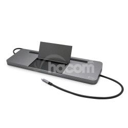 Dokovaciu stanicu pripojíte jediným káblom (60 cm) do USB-C alebo Thunderbolt 3 portu počítača a môžete ju začať okamžite využívať. Inštalácia ovládačov je automatická zo systému. Dokovaciu stanicu sme navrhli tak, aby sa dala použiť aj ako ergonomický podstavec po váš notebook či tablet.