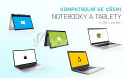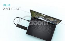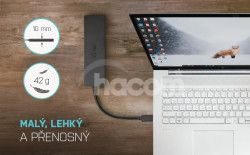 Hub nevyžaduje inštaláciu ovládačov, iba ho pomocou USB-C kábla pripojíte a môžete ho ihneď začať využívať. Hub má vstavanú prepäťovú ochranu vášho počítača pre prípad skratu na periférnych zariadeniach. Samozrejmosťou je spätná kompatibilita s USB 2.0. Vďaka kompaktným rozmerom a nízkej hmotnosti ho môžete mať v taške stále sebou - kovový povrch ostatne chráni húb pred poškodením a pred poškriabaním.