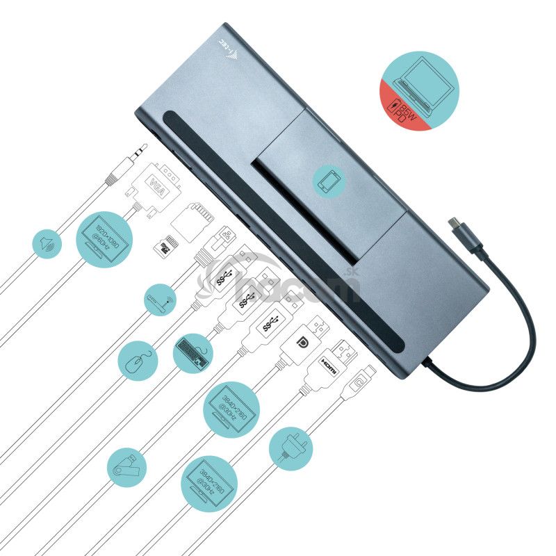 i-tec USB-C Metal Low Profile 4K Triple LCD Docking Station + i-tec Universal Charger 112W C31FLATPLUS112W