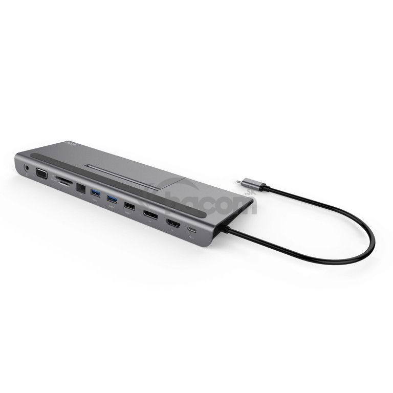Dokovaciu stanicu pripojíte jediným káblom (19 cm) do USB-C alebo Thunderbolt 3 portu počítača a môžete ju začať okamžite využívať. Inštalácia ovládačov je automatická zo systému. Dokovaciu stanicu sme navrhli tak, aby sa dala použiť aj ako ergonomický podstavec po váš notebook či tablet.
