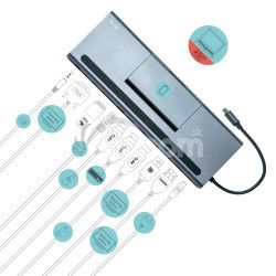 Tento produkt je produktovú sadou dokovacia stanica a univerzálneho nabíjacieho adaptéra. Zaobstaraním tejto sady získate kompletné riešenie, ktoré vám umožnia ako jednoduché pripojenie vášho obľúbeného príslušenstva, vrátane LAN siete a externých monitorov, tak aj jednoducho a pohodlne vaše zariadenie nabíjať (a to vrátane vášho notebooku či tabletu).DOKOVACIA STANICA