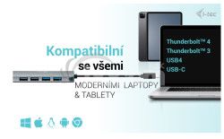 Dokovacia stanica je tiež plne kompatibilná s tabletmi a notebookmi vybavenými portom Thunderbolt 3/4.