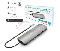 - i-tec USB-C Metal Nano 2x HDMI Docking Station, PD 100W C31NANOHDM2DOCPD