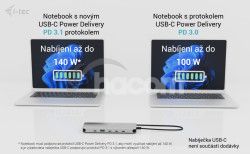 • ** Ak váš notebook alebo tablet podporuje nový a moderný nabíjací protokol USB-C Power Delivery PD 3.1, dokovacia stanica ponúkne nabíjací výkon až 140 W (ak máte protokol PD 3.0, nabíjací výkon bude až 100 W).