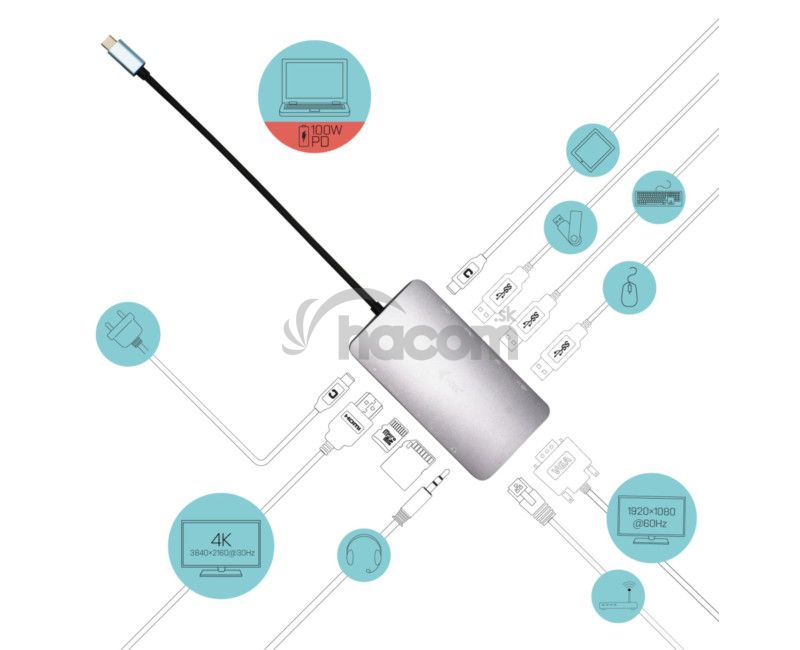 • i-tec USB-C dokovacia stanica s káblom (20 cm)
