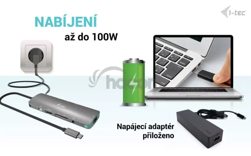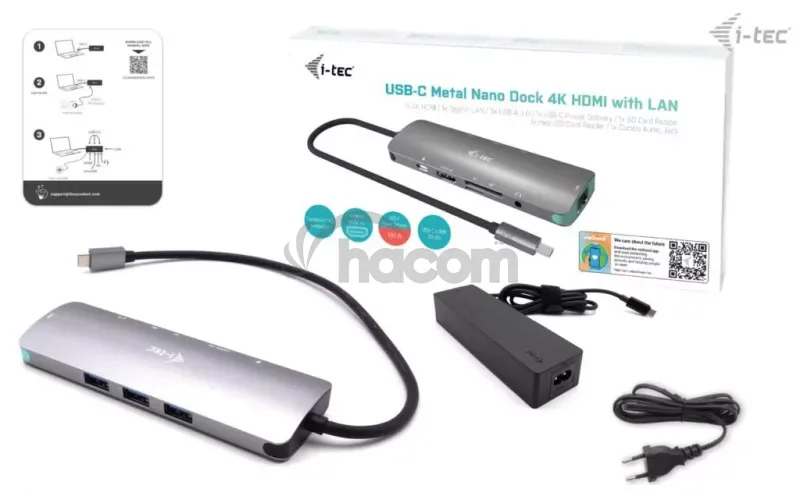- i-tec USB-C Metal Nano Docking Station 4K HDMI LAN, Power Delivery 100 W + Charger 100 W (bundle) C31NANOLANPD100