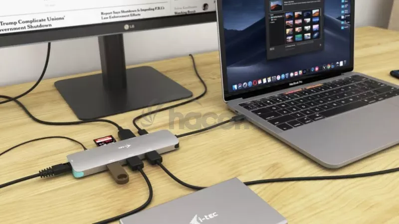 K dokovacej stanici je tiež priložený napájací adaptér USB-C s celkovým výkonom 100 W (USB-C port: 100 W)