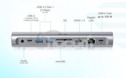 Malá a prenosná kovová dokovacia stanica, ktorá je navrhnutá ako príslušenstvo pre kovový stojan s produktovým kódom C31METALPAD. Dokovacia stanica je ľahká, odolná av prípade potreby môže slúžiť samostatne a po prípadnom odpojení od stojanu ako mobilný doplnok pre obchodné cesty.Dokovacia stanica je vybavená HDMI portom, 3 USB portami (2x USB-A a jedným univerzálnym portom USB-C ktorý dokáže ako prenášať dáta, tak aj nabíjať dokovaciu stanicu a jej prostredníctvom aj váš notebook), Gigabitovým LAN adaptérom, kombinovaným audio/mic portom a rovnako aj SD/microSD sloty, čo poteší najmä milovníkov fotografií a videa.