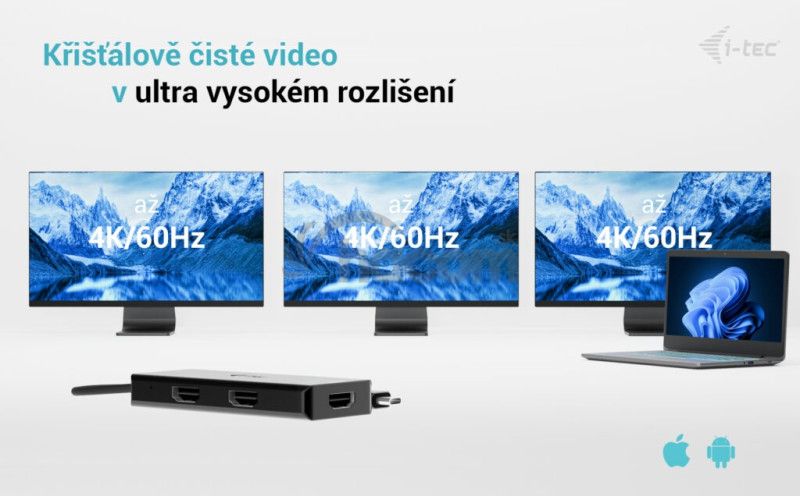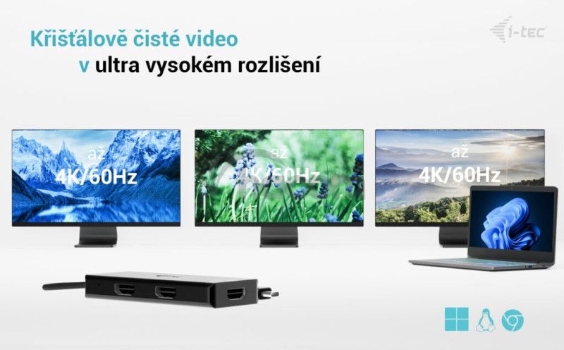 - i-tec USB-C Triple 4K HDMI Video adaptér, Power Delivery 100W C31TRIPLE4KHDMIPD