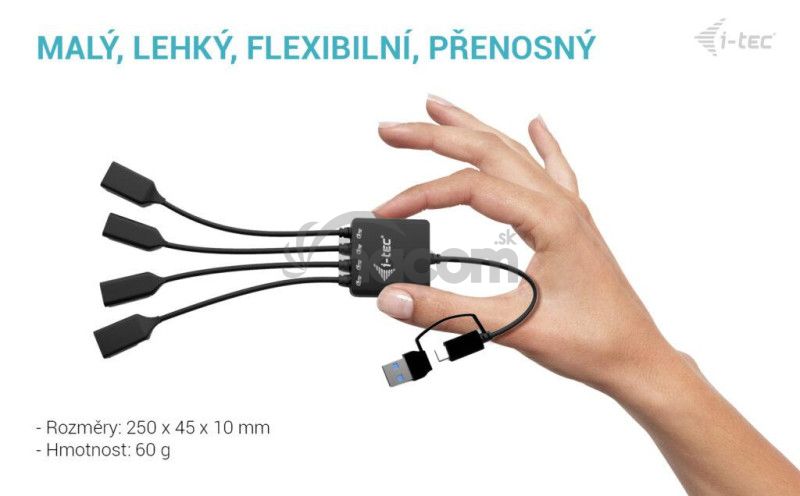 • Malý, efektívny a flexibilný USB-C/A káblový HUB• 2× USB-A a 2× USB-C porty umožňujú pripojenie rôznych periférií