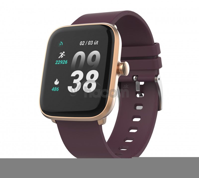 - iGET FIT F20 Gold - šikovné hodinky, 1,4" IPS, 160 mAh, vínovo červený opasok F20 Gold