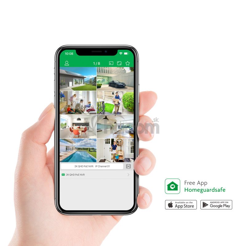 - Aplikácia: zadarmo aplikácia "Homeguardsafe" pre ľahký prístup z vášho smartfónu/tabletu s podporou Android a iOS z celého sveta v slovenčine,