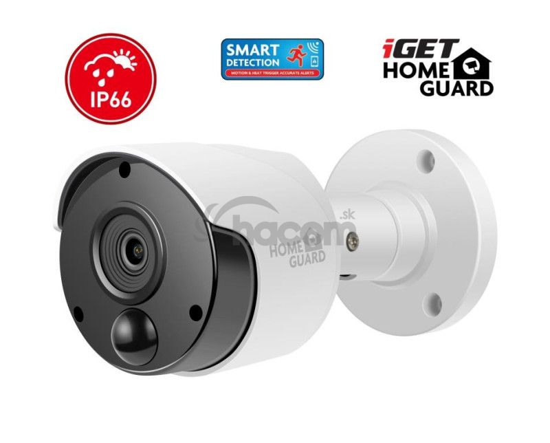 Vonkajší FullHD 1080p PoE IP kamera sa SMART detekciou pohybu, IP66 krytie - iget HOMEGUARD HGNVK930CAM.Vonkajšia odolná FullHD kamera iget HOMEGUARD HGNVK930CAM s PoE napájaním a inovatívne SMART detekciou pohybu pomocou vstavaného PIR čidla, je príslušenstvo ku kamerovému setu iget HOMEGUARD HGNVK85304. Rozlíšenie FullHD 1080p (1920 x 1080) pre video vo veľmi vysokej kvalite, denné i nočné prevádzku, IR nočné prisvetlenie až 30 m, snímač 1 / 2.7 "CMOS, ohnisková vzdialenosť 3,6mm, odolnosť proti prachu a vode IP66. Uhol záberu 92 °. Uhol záberu PIR čidla 120 ° na vzdialenosť 7m.