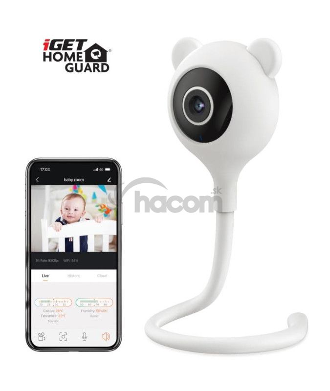 - iGET HGWIP816 - WiFi opatrovateľka, kamera FullHD, meranie teploty a vlhkosti, nočné videnie, melódie HGWIP816