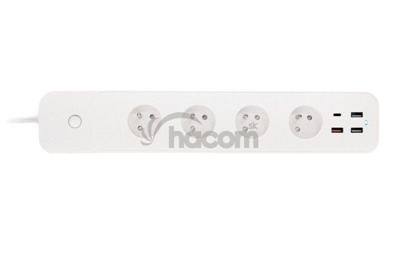 iGET HOME Power 4 USB - Smart WiFi predlžovací prívod 4x AC 230V s 4x USB portom a meraním spotrebyChytrý predlžovací prívod ovládaný cez WiFi, kompatibilný s aplikáciou iGET HOME, Google Assistant a Amazon Alexa, 4x USB port (2x USB, 1x USB extra charge, 1x USB-C), meranie spotreby energie, max. zaťaženie 3680 W, aplikácia pre Android a iOS zadarmo v slovenčine, nastavenie časovačov, štatistiky.