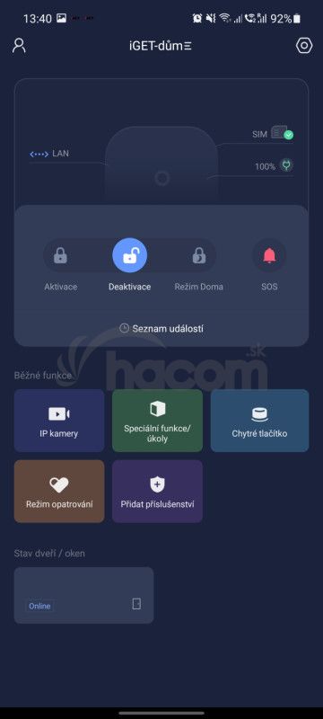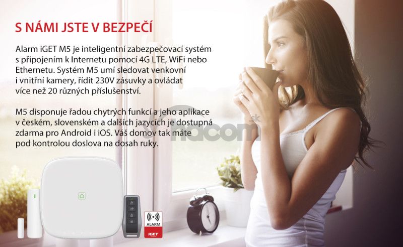 Majte svoj domov pod kontrolou s inteligentným zabezpečovacím systémom iGET SECURITY M5-4G Lite. Je bezdrôtový, s vašim telefónom komunikuje cez 4G LTE, WiFi a Ethernet. Pri výpadku Internetu sa prepojí na 4G LTE, vie tiež posielať SMS správy pomocou GSM. Rozumie si s Androidom aj iOS, môžete s ním sledovať vnútorné a vonkajšie IP kamery, riadiť 230V zásuvky a ďalších viac ako 20 typov príslušenstva. Výdrž batérií v príslušenstve je až 5 rokov a dosah k alarmu až 1 km. Alarm ďalej ponúka pripojenie na pult centrálnej ochrany, režim opatrovania, funkciu domového zvončeka alebo špeciálne smart funkcie a tlačidlá. Najvyššie zabezpečenie komunikácie je 256 bit a upraviť nastavenia alarmu môžete vzdialene odkiaľkoľvek. Manuál aj aplikácie sú kompletne v českom, slovenskom, poľskom, maďarskom a anglickom jazyku.iGET SECURITY M5-4G Lite